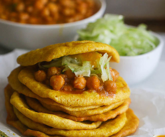 Ingredients: Spicy Flat bread (Bara) 3 cups flour (half spelt and other half amaranth) 1 teaspoon cumin ½-1 teaspoon turmeric 2 teaspoons active or dry yeast 1/2 teaspoons salt ½ teaspoon white pepper 1 ¼ cup warm water or more adjust water to form soft dough 1 Tablespoon sugar Curry chickpeas ¼ - 1/2 cup grapeseed oil 2 -3 tablespoon curry powder 1 large onion diced 1 teaspoon ground allspice 1 teaspoon ground nutmeg spice 1½ teaspoon smoked paprika 2 teaspoons fresh or dried thyme 1 teaspoon cumin spice 1 teaspoon white pepper 2 cans of chickpeas drained 2 cups of vegetable broth ½-1 teaspoon cayenne pepper optional 1 scotch bonnet or habanero pepper 2 green onions chopped 2 tablespoons or more chopped...