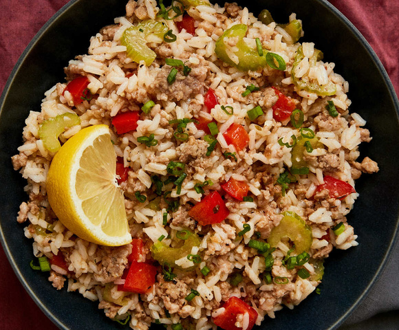 Ingredients: 1 pound ground beef or turkey or jackfruit 1 yellow onion, chopped 1 green bell pepper, chopped 1 red bell pepper, chopped 2 teaspoons beef or vegetable bouillon granules 1/2 teaspoon salt 1/2 teaspoon seasoned salt 1/2 teaspoon ground black pepper 2 cups water 1 cup uncooked jasmine or balsamic or brown or black (will talk longer to cook) riceHeat a large skillet over medium-high heat and stir in the choice of meat, onion, green and red peppers, bullion, salt, seasoned salt, and pepper. Cook and stir until the beef is crumbly, evenly browned, and no longer pink. Drain and discard any excess grease. Stir in the water and rice. Bring to a boil over high heat, then reduce heat to medium-low, cover,...