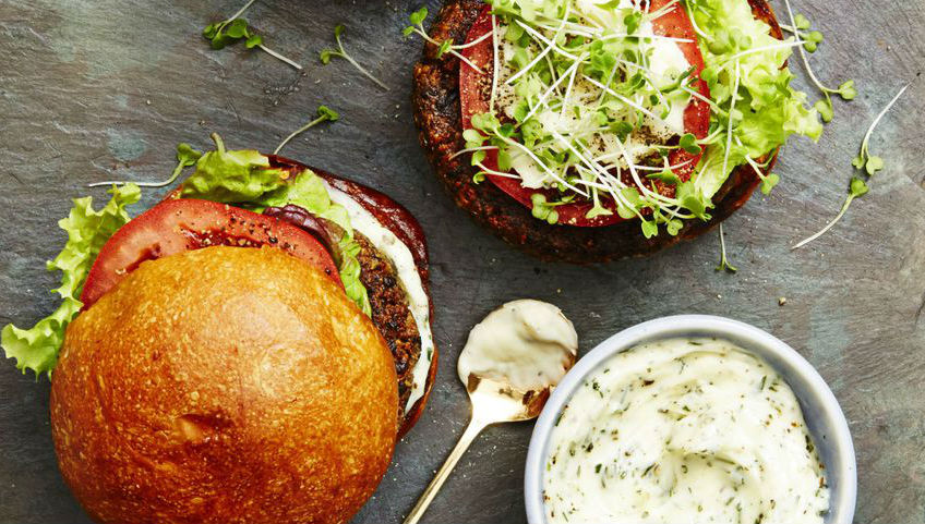 - Make the Burgers: Preheat oven to 375 degrees F. In 3-quart, shallow baking dish, toss mushrooms with walnuts, garlic, 1 tablespoon oil, 3⁄4 teaspoon salt, and 1⁄4 teaspoon pepper; spread in even layer. Bake 20 minutes or until mushrooms are tender. Set aside to cool. Turn oven off.