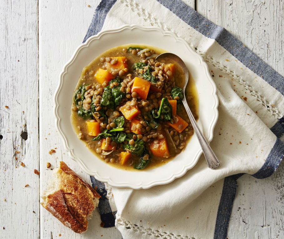- In pressure-cooker pot on medium, cook shallots and ginger in oil 5 minutes or until shallots are golden, stirring. Add coriander and cardamom; cook 1 minute, stirring. Add squash, lentils, broth and 1/4 teaspoon salt.